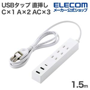 - エレコム USBタップ コード付き 1.5m Type-C×1 USB-A×2 AC×3 15W ホワイト T-U08-3A2C15WH