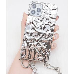 スマホケース チェーン付 シルバーメタリックiPhoneケース カバー