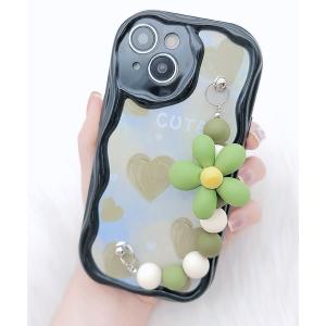 スマホケース ウエーブライン 3D フラワーストラップ付き iPhone ケース