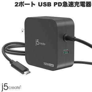 - j5 create ジェイファイブクリエイト USB Type-C 102W ケーブル一体型 GaN PD3.0 急速充電器 20W USB Type-C 1ポート付き ブラック ネコポス不可