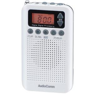 - ラジオ 小型 ポケットラジオ デジタル DSP式 AM/FM ホワイト AudioComm|RAD-P338S-W 03-0987 オーム電機