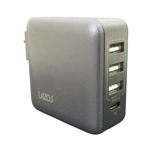 - AC充電器 4ポート PD32w AC-USB充電 Type-C/A ブラック Lazos L-AC4-B/0309/送料無料