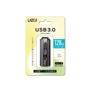 - USBメモリ|128GB|USB3.0|キャップ付き|フラッシュメモリ|ブラック|LAZOS ラソス|ネコポス便配送制限12点まで|L-US128-CPB