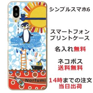 - シンプルスマホ6 ケース A201SH カバー らふら 名入れ ペンギン天国