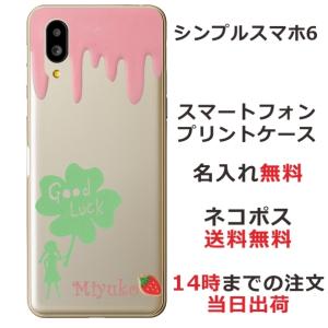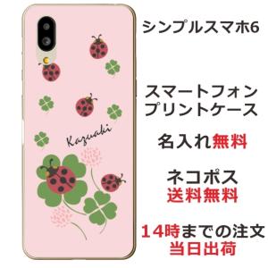 - シンプルスマホ6 ケース A201SH カバー らふら 名入れ クローバー グッドラック