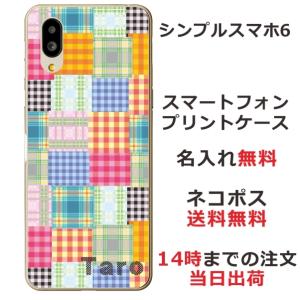 - シンプルスマホ6 ケース A201SH カバー らふら 名入れ カラフル チェック