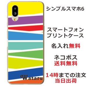 - シンプルスマホ6 ケース A201SH カバー らふら 名入れ パステル ライン