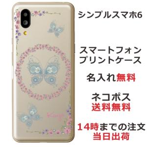 - シンプルスマホ6 ケース A201SH カバー らふら 名入れ レース バタフライ