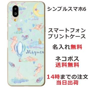 - シンプルスマホ6 ケース A201SH カバー らふら 名入れ エンジェルバルーン