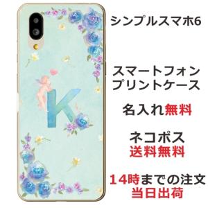 - シンプルスマホ6 ケース A201SH カバー らふら 名入れ イニシャル エンジェル