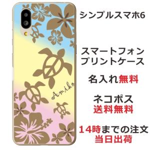 - シンプルスマホ6 ケース A201SH カバー らふら 名入れ ハワイアン グラデーションホヌ