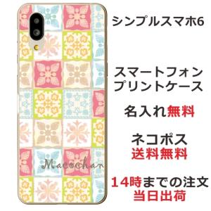 - シンプルスマホ6 ケース A201SH カバー らふら 名入れ ハワイアン ハワイアン キルト