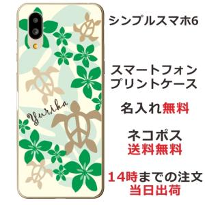 - シンプルスマホ6 ケース A201SH カバー らふら 名入れ ハワイアン グリーン ホヌ
