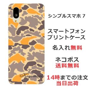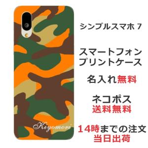 - シンプルスマホ7 A404SH らふら 名入れ スマホケース 迷彩 オレンジ
