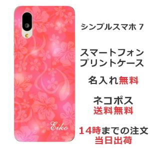 - シンプルスマホ7 A404SH らふら 名入れ スマホケース ハイビスカスピンク