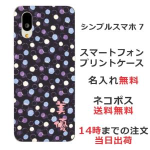 - シンプルスマホ7 A404SH らふら 名入れ スマホケース 和柄 モダンドットネイビー