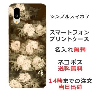 - シンプルスマホ7 A404SH らふら 名入れ スマホケース 和柄 セピア牡丹