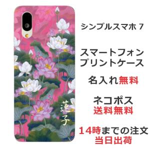 - シンプルスマホ7 A404SH らふら 名入れ スマホケース 和柄 蓮花ピンク