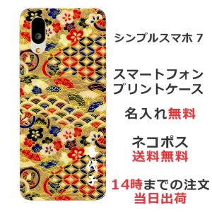 - シンプルスマホ7 A404SH らふら 名入れ スマホケース 和柄 千代紙ゴールド