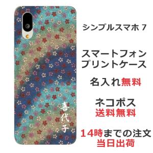 - シンプルスマホ7 A404SH らふら 名入れ スマホケース 和柄 和小花ブルーグラデ