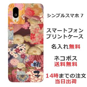 - シンプルスマホ7 A404SH らふら 名入れ スマホケース 和柄 和花パッチワーク