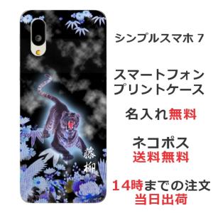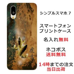 - シンプルスマホ7 A404SH らふら 名入れ スマホケース 和柄 猛虎