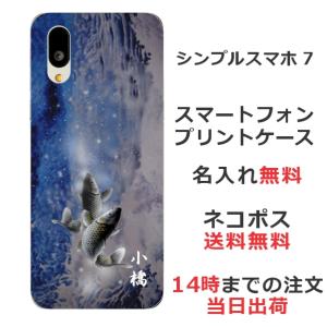- シンプルスマホ7 A404SH らふら 名入れ スマホケース 和柄 蒼白昇り鯉
