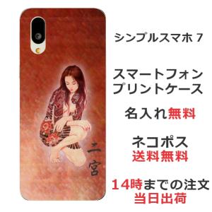 - シンプルスマホ7 A404SH らふら 名入れ スマホケース 和柄 花魁