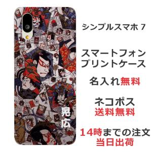 - シンプルスマホ7 A404SH らふら 名入れ スマホケース 和柄 歌舞伎