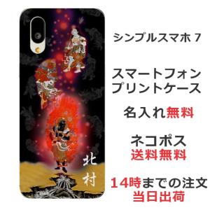 - シンプルスマホ7 A404SH らふら 名入れ スマホケース 和柄 不動明王