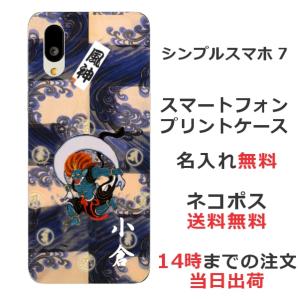 - シンプルスマホ7 A404SH らふら 名入れ スマホケース 和柄 風神