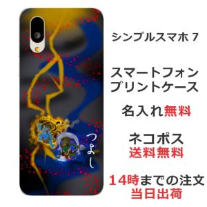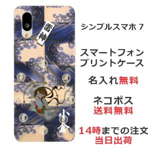 - シンプルスマホ7 A404SH らふら 名入れ スマホケース 和柄 雷神
