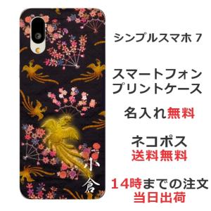 - シンプルスマホ7 A404SH らふら 名入れ スマホケース 和柄 鳳凰黒