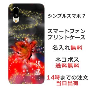 - シンプルスマホ7 A404SH らふら 名入れ スマホケース 和柄 鳳凰赤
