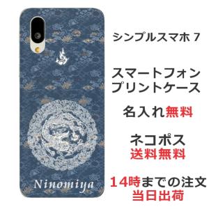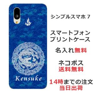 - シンプルスマホ7 A404SH らふら 名入れ スマホケース 和柄 円龍青