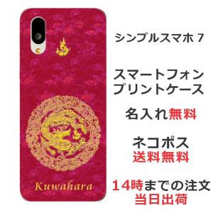 - シンプルスマホ7 A404SH らふら 名入れ スマホケース 和柄 円龍赤