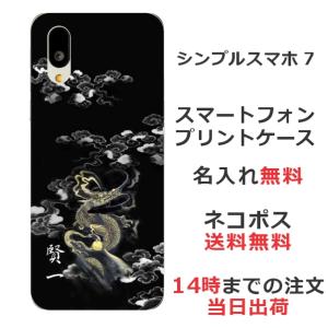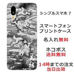 - シンプルスマホ7 A404SH らふら 名入れ スマホケース 和柄 水墨双龍