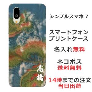 - シンプルスマホ7 A404SH らふら 名入れ スマホケース 和柄 龍虎蒼橙