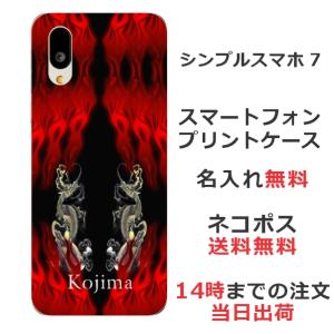 - シンプルスマホ7 A404SH らふら 名入れ スマホケース 和柄 炎闇双龍