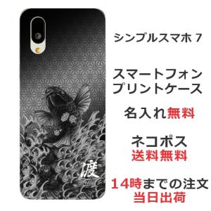 - シンプルスマホ7 A404SH らふら 名入れ スマホケース 和柄 昇り鯉黒