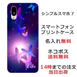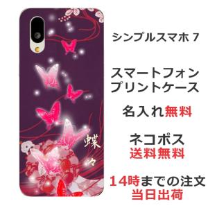 - シンプルスマホ7 A404SH らふら 名入れ スマホケース 和柄 紫闇光蝶