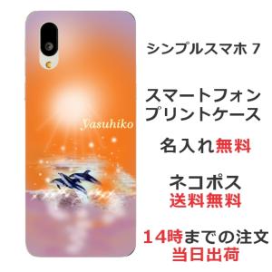 - シンプルスマホ7 A404SH らふら 名入れ スマホケース ドルフィン サンセット
