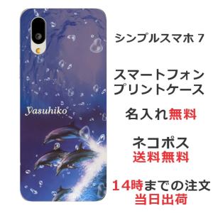 - シンプルスマホ7 A404SH らふら 名入れ スマホケース ドルフィン ジャンプ