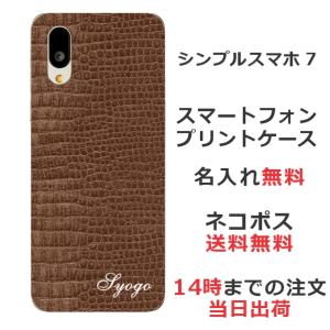 - シンプルスマホ7 A404SH らふら 名入れ スマホケース クロコダイル ブラウン