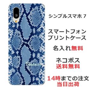 - シンプルスマホ7 A404SH らふら 名入れ スマホケース へび柄 ブルー