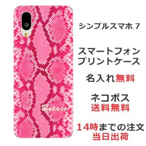 - シンプルスマホ7 A404SH らふら 名入れ スマホケース へび柄 ピンク
