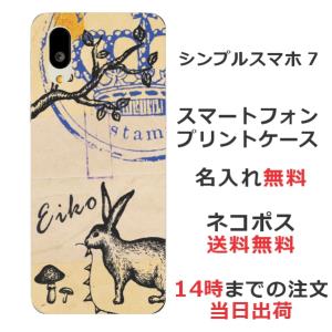 - シンプルスマホ7 A404SH らふら 名入れ スマホケース アンティークうさぎ