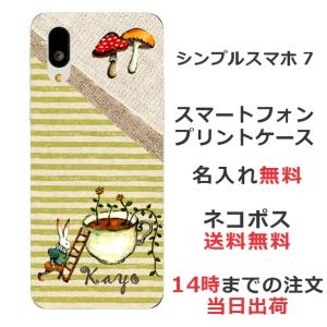 - シンプルスマホ7 A404SH らふら 名入れ スマホケース ティーカップうさぎ