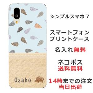 - シンプルスマホ7 A404SH らふら 名入れ スマホケース 北欧デザイン ハリネズミ