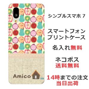 - シンプルスマホ7 A404SH らふら 名入れ スマホケース 北欧デザイン フルーツ カラフル